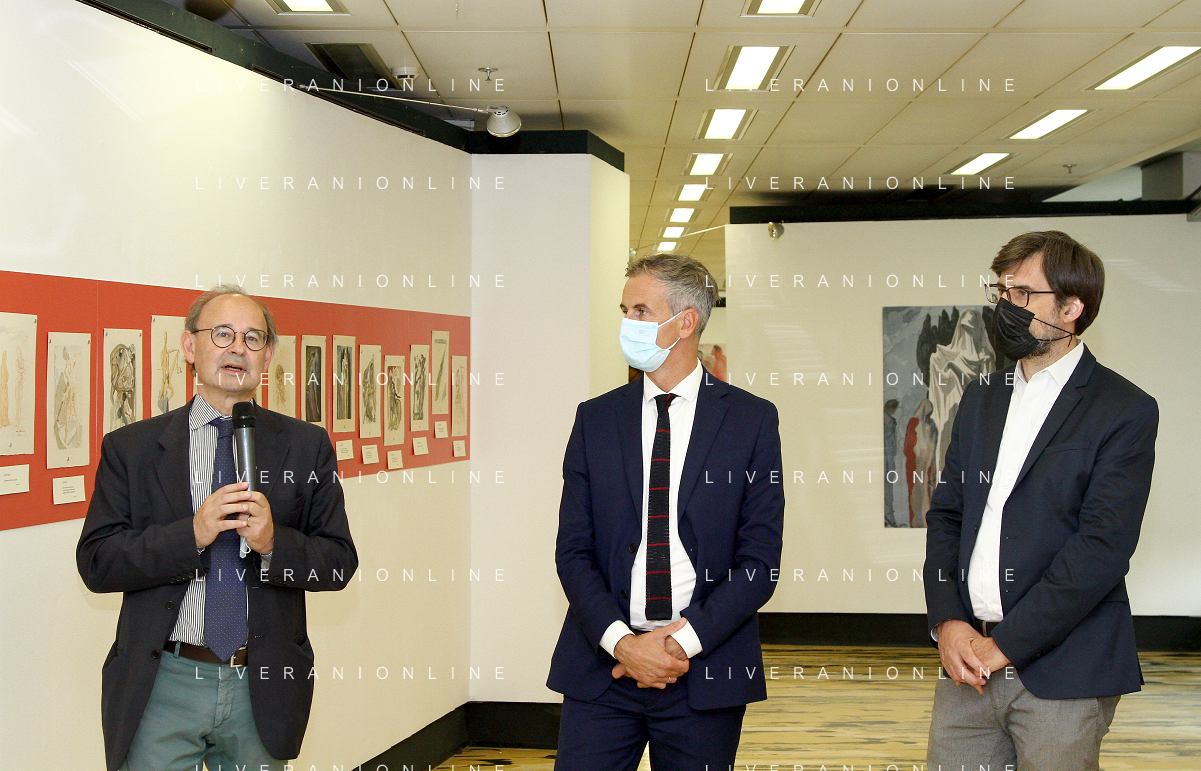 Milano ( MI ) 14/09/2021 Mostra in occasione del 700∞ anniversario dantesco: esposte a Palazzo Pirelli le 100 tavole originali con cui Salvador DalÌ ha illustrato la Divina Commedia Nella foto: Andrea Kerbaker, Alessandro Fermi e Borghetti PH Lauro Montagnini / AGENZIA ALDO LIVERANI SAS