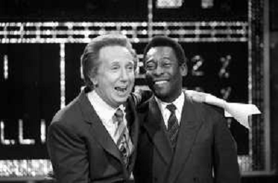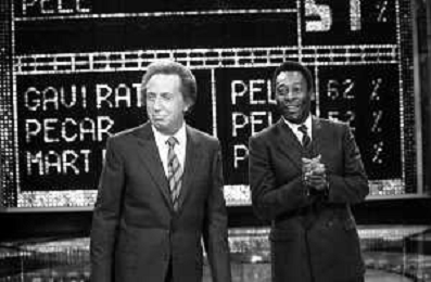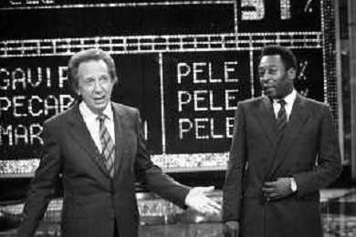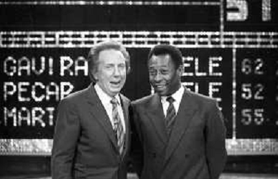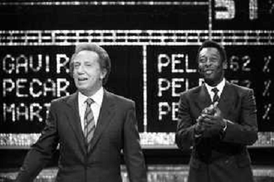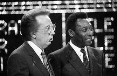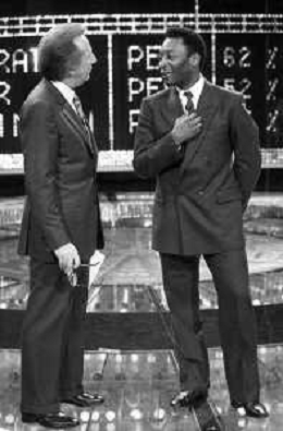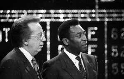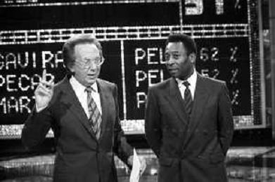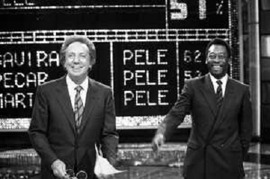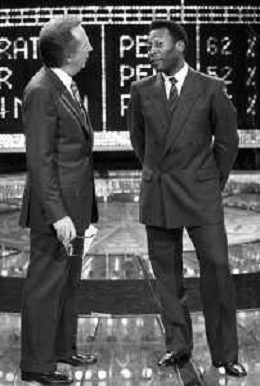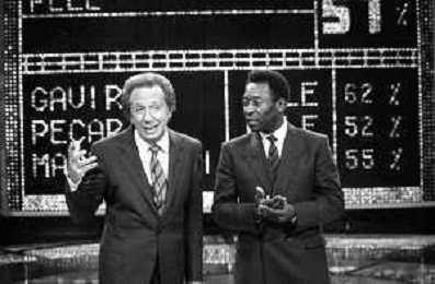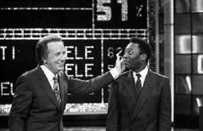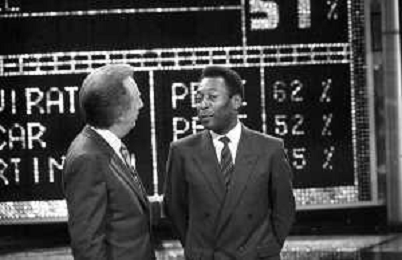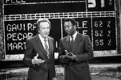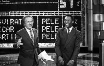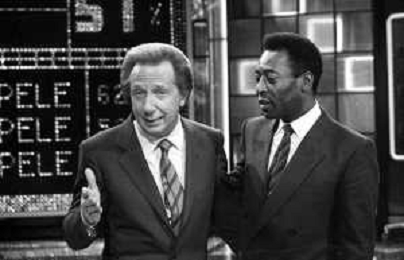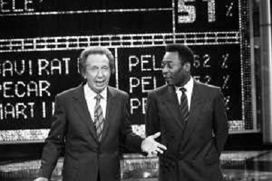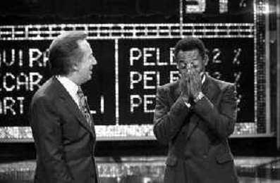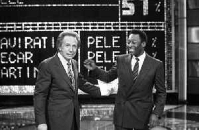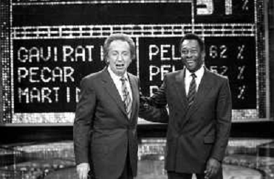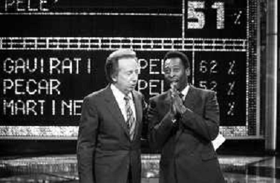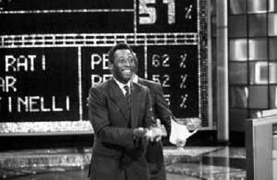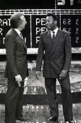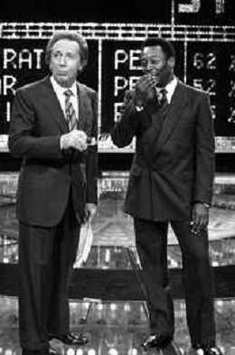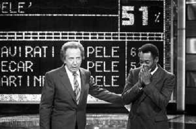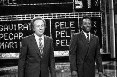 IL CALCIATORE BRASILIANO PELE' EDSON ARANTES DO NASCIMENTO CON MIKE BONGIORNO OSPITE A 'PENTATLON' A MILANO NEL 1987 - RETROSPETTIVA