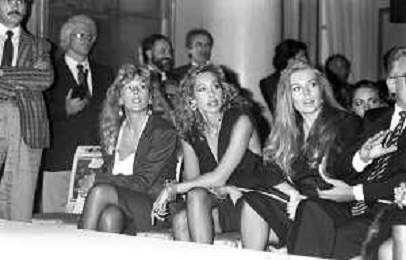 RETROSPETTIVA CATERINA CASELLI CANTANTE Nella foto alla sfilata di Presentazione della Collezione di Pellicce Ravizza a Milano ottobre 1986 con Daniela Zuccoli (Bongiorno) e Veronica Lario (Berlusconi) ©Archivio Giovanni Liverani/AGENZIA ALDO LIVERANI SAS