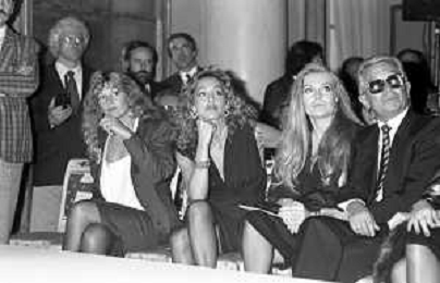 RETROSPETTIVA CATERINA CASELLI CANTANTE Nella foto alla sfilata di Presentazione della Collezione di Pellicce Ravizza a Milano ottobre 1986 con Daniela Zuccoli (Bongiorno) Veronica Lario (Berlusconi) e Giuliano Ravizza ©Archivio Giovanni Liverani/AGENZIA ALDO LIVERANI SAS