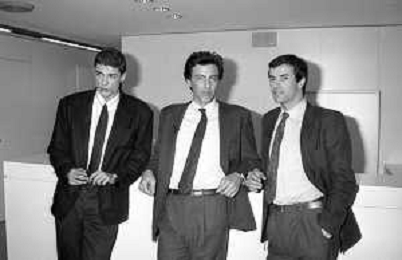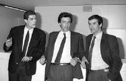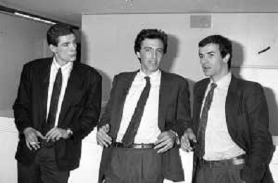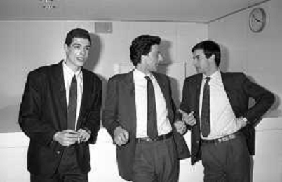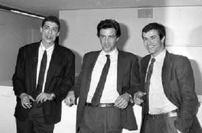 RETROSPETTIVA ALESSANDRO GASSMANN A MILANO MARZO 1987 NELLA FOTO CON LUCA BARBARESCHI E ANDREA OCCHIPINTI ©Archivio Giovanni Liverani / AG ALDO LIVERANI SA
