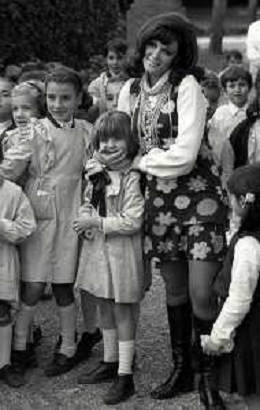 RETROSPETTTIVA ISABELLA BIAGINI ATTRICE-SHOWGIRL E IMITATRICE NELLA FOTO ISABELLA BIAGINI CON LA FIGLIA MONICA A SCUOLA A ROMA NELL'ANNO 1968 AG ALDO LIVERANI SAS