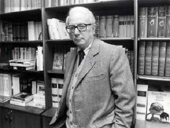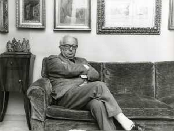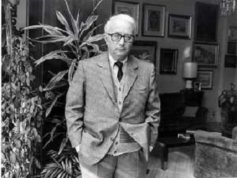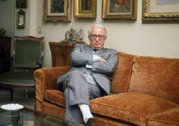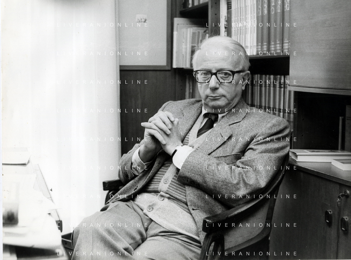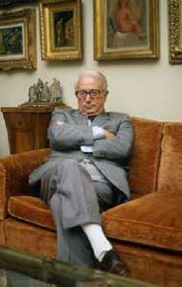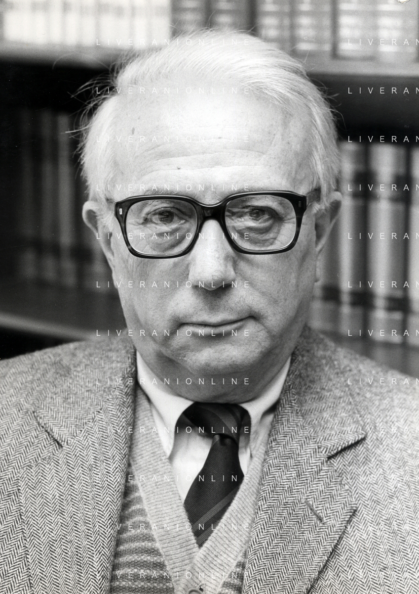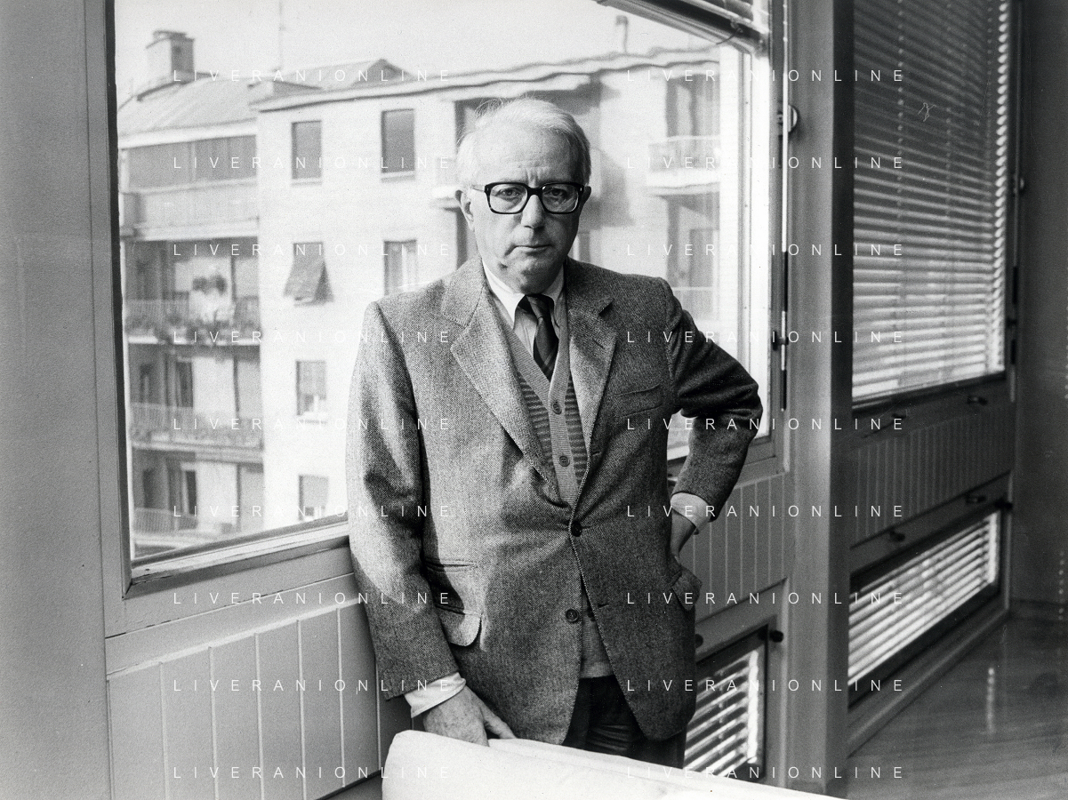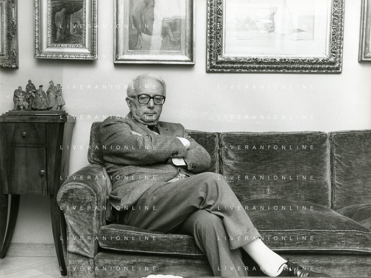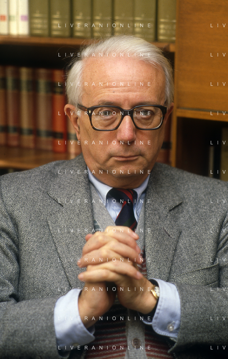 RETROSPETTIVA ENZO BIAGI GIORNALISTA E SCRITTORE E CONDUTTORE TELEVISIVO NELLA FOTO ENZO BIAGI NELLA SUA ABITAZIONE NELL'ANNO 1985 AG ALDO LIVERANI SAS