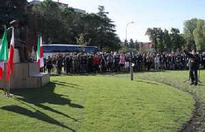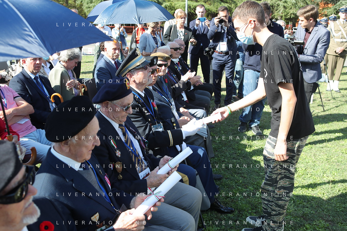 IMOLA 23 09 2021 IL BUSTO DEL GENERALE POLACCO WLADYSLAW ANDERS E STATO SCOPERTO QUESTA MATTINA CON LA PRESENZA DELLA SUA FIGLIA AMBASCIATRICE IN ITALIA ANNA MARIA ANDERS E IL SINDACO DI IMOLA MARCO PANIERI NELLA FOTO I STUDENTE DELLE SCUOLE SUPERIORI OMAGGIANO AI REDUCI POLACCHI DELLA SECONDA GUERRA MONDIALE UNA PERGAMENA FOTO GIANNI SANNA-AG ALDO LIVERANI SAS