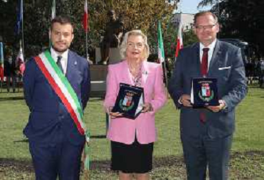 IMOLA 23 09 2021 IL BUSTO DEL GENERALE POLACCO WLADYSLAW ANDERS E STATO SCOPERTO QUESTA MATTINA CON LA PRESENZA DELLA SUA FIGLIA AMBASCIATRICE IN ITALIA ANNA MARIA ANDERS E IL SINDACO DI IMOLA MARCO PANIERI NELLA FOTO DA SINISTRA SINDACO MARCO PANIERI AMBASCIATRICDE ANNA MARIA ANDERS FOTO GIANNI SANNA-AG ALDO LIVERANI SAS