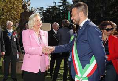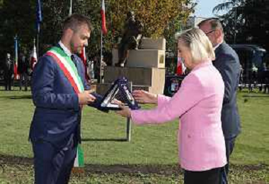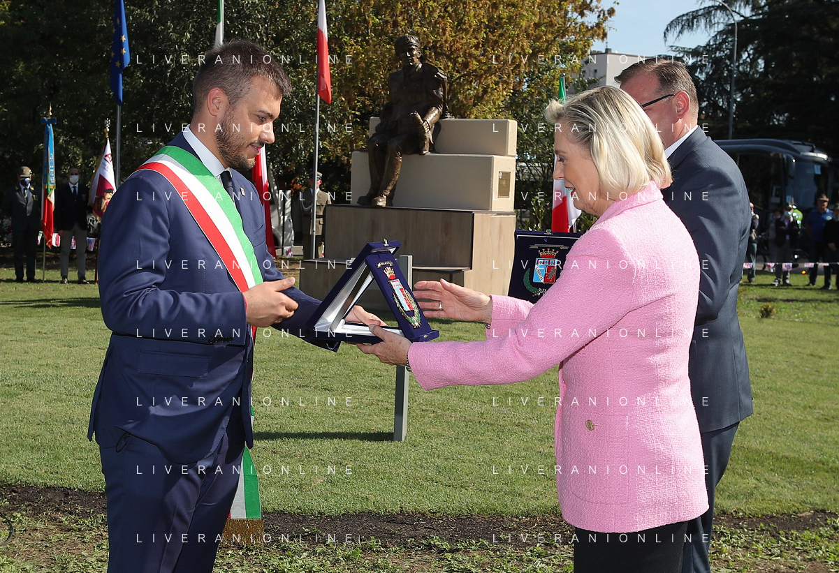 IMOLA 23 09 2021 IL BUSTO DEL GENERALE POLACCO WLADYSLAW ANDERS E STATO SCOPERTO QUESTA MATTINA CON LA PRESENZA DELLA SUA FIGLIA AMBASCIATRICE IN ITALIA ANNA MARIA ANDERS E IL SINDACO DI IMOLA MARCO PANIERI NELLA FOTO GABRIELE RAVANELLI FOTO GIANNI SANNA-AG ALDO LIVERANI SAS