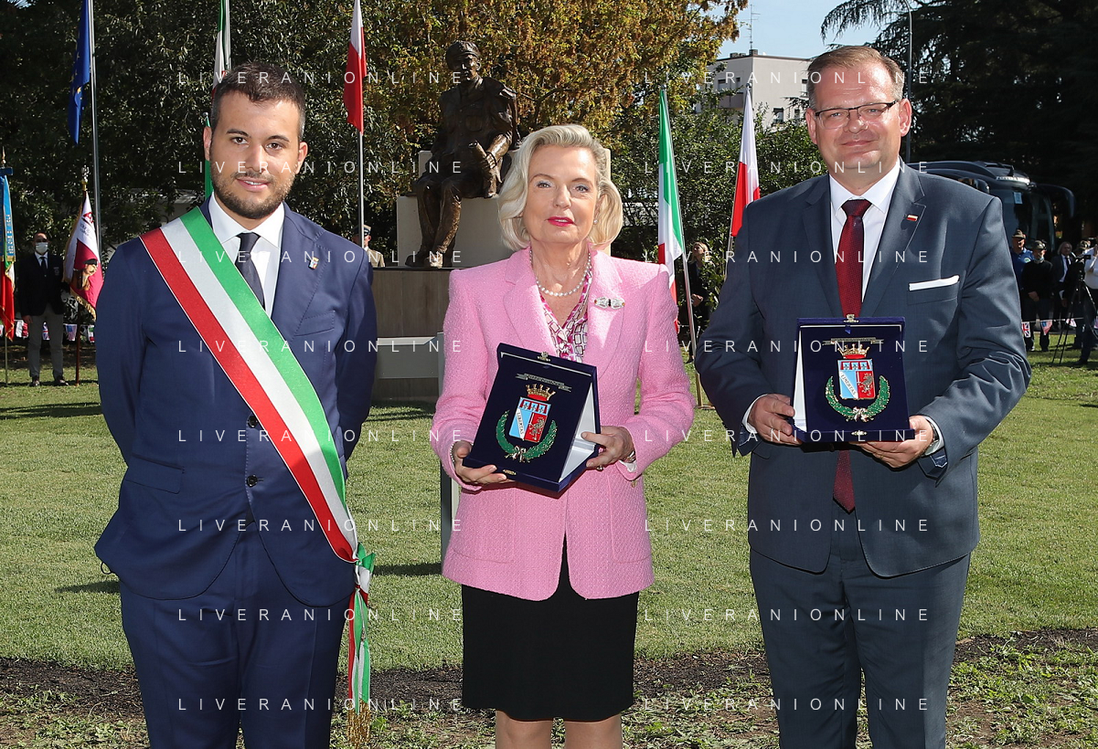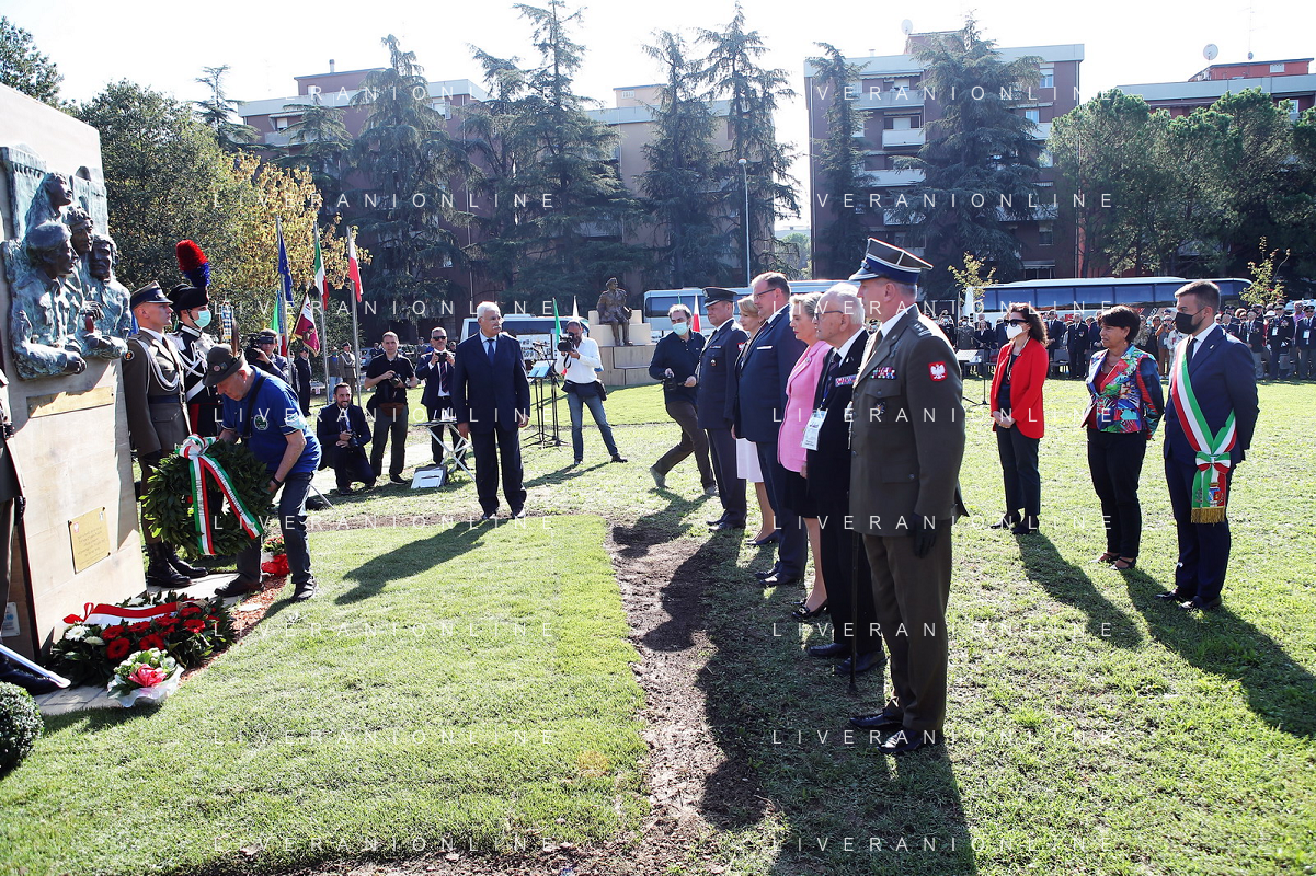 IMOLA 23 09 2021 IL BUSTO DEL GENERALE POLACCO WLADYSLAW ANDERS E STATO SCOPERTO QUESTA MATTINA CON LA PRESENZA DELLA SUA FIGLIA AMBASCIATRICE IN ITALIA ANNA MARIA ANDERS E IL SINDACO DI IMOLA MARCO PANIERI NELLA FOTO DEPOSIZIONE DELLE CORONE PER COMMEMORARE LE VITTIME DEI SOLDATI POLACCHI FOTO GIANNI SANNA-AG ALDO LIVERANI SAS