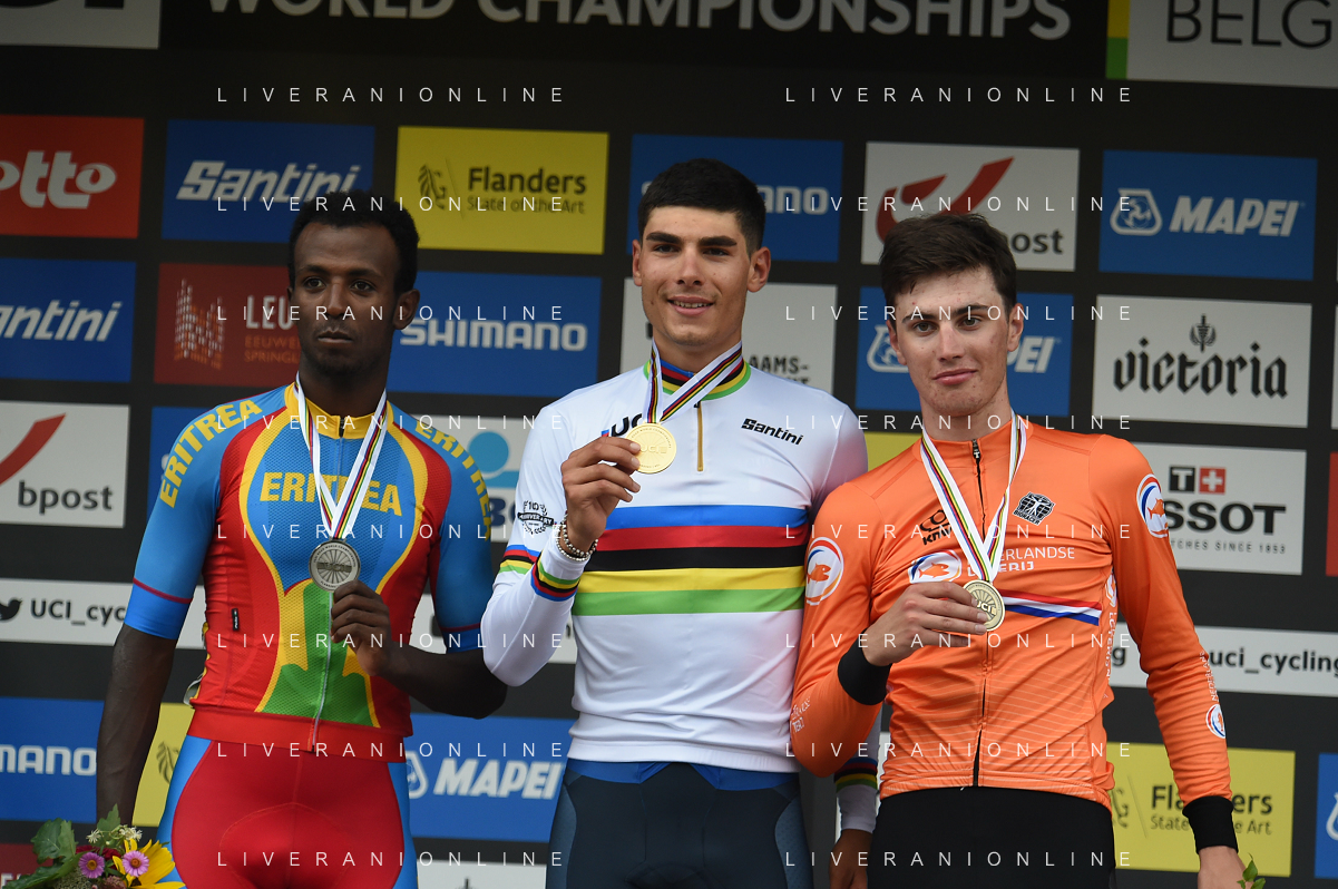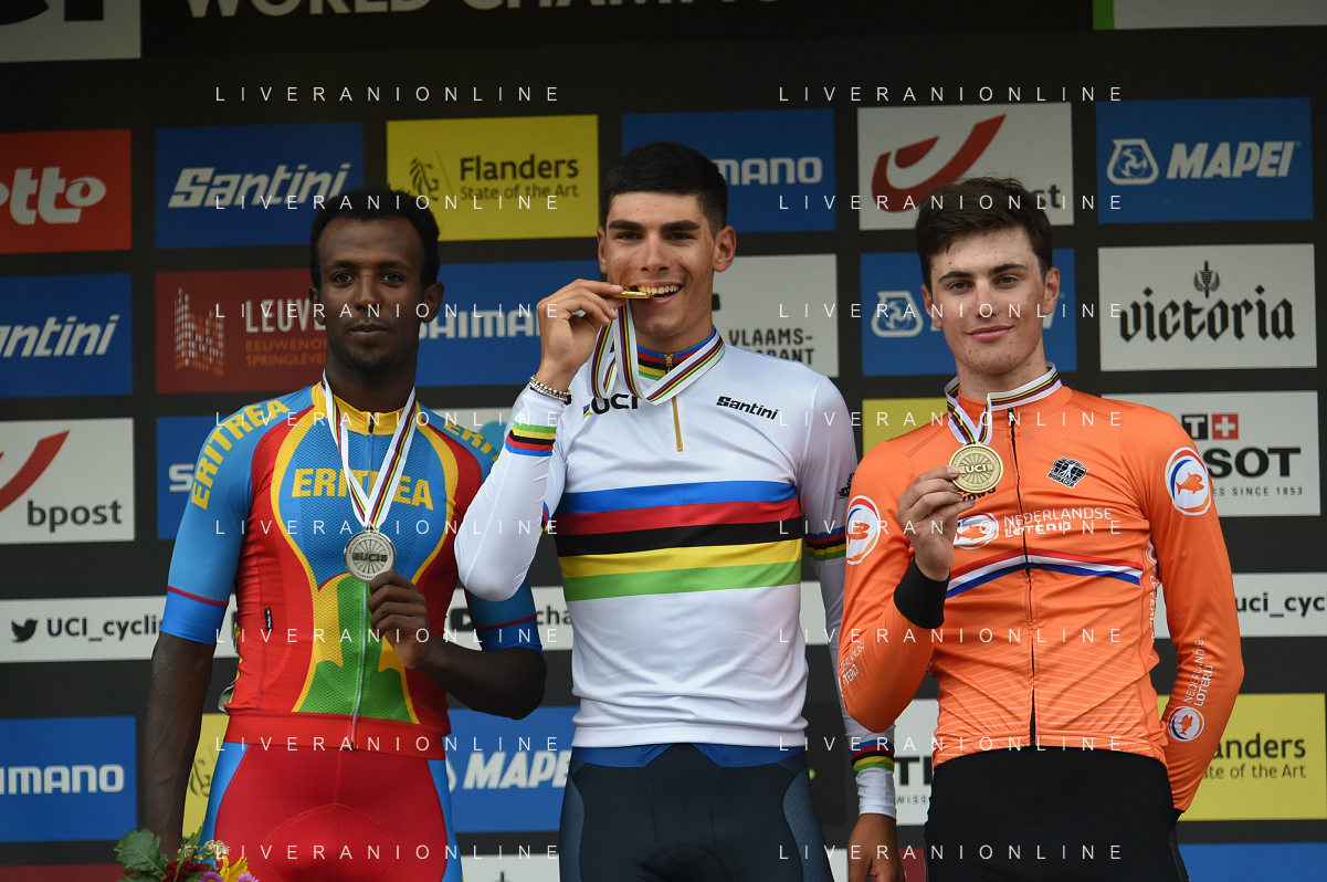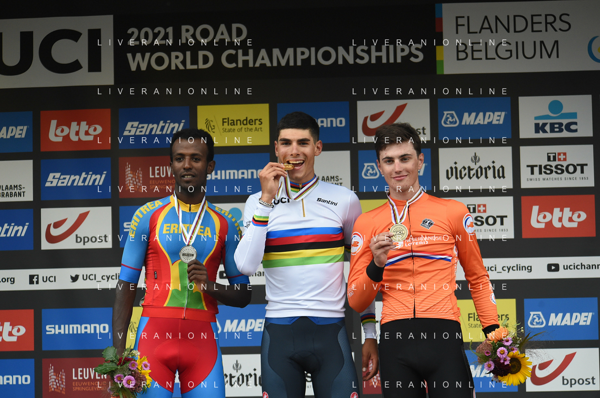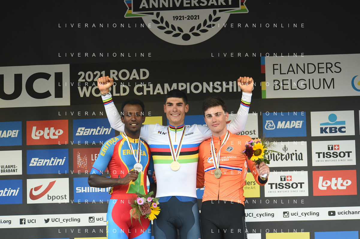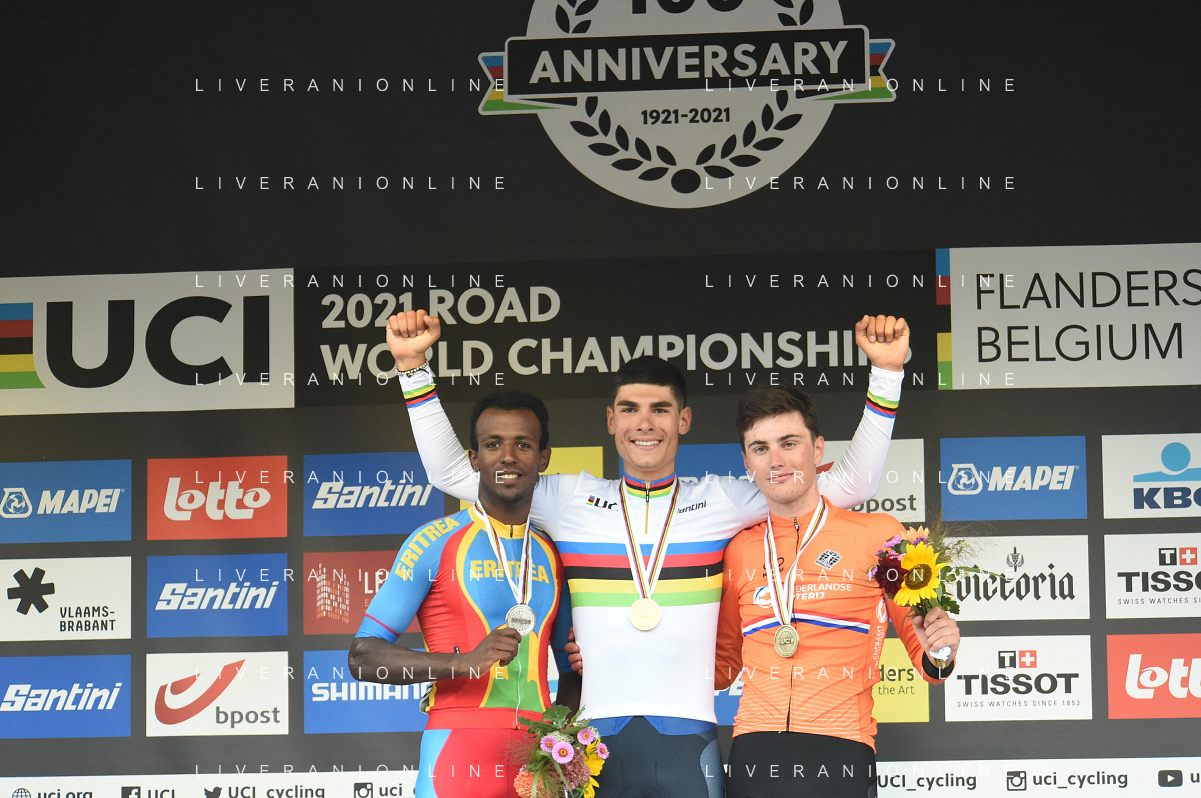 24-09-2021 World Championships U23; 2021, Colpack - Ballan; 2021, Eritrea; 2021, Olanda; Baroncini, Filippo; Ghirmay Hailu, Biniam; Kooij, Olav; Leuven; FOTO STEFANO SIROTTI-AG ALDO LIVERANI SAS