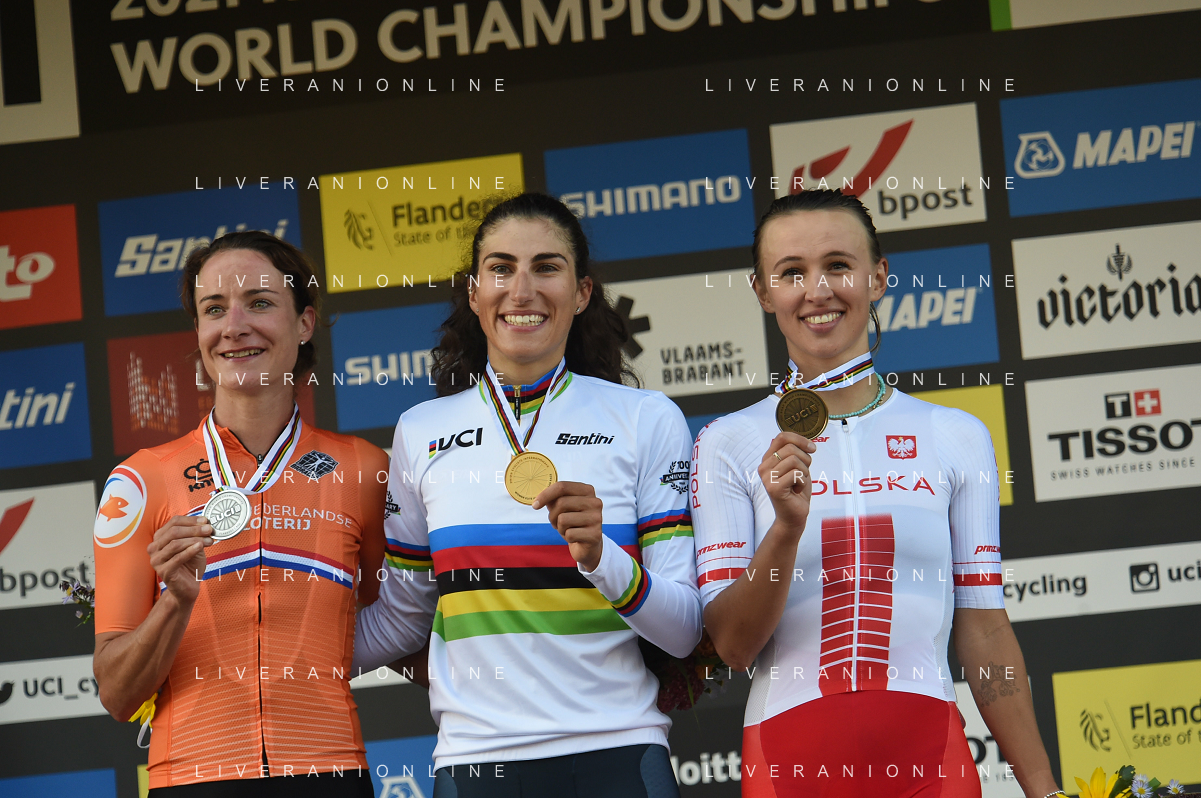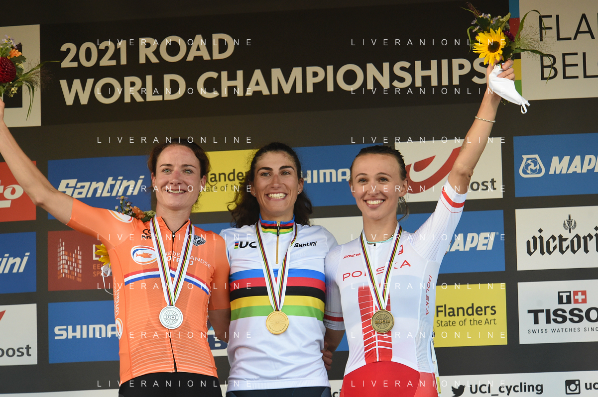 25-09-2021 World Championships Elite Women; 2021, Italia; 2021, Olanda; 2021, Polonia; Balsamo, Elisa; Vos, Marianne; Niewiadoma, Katarzyna; Leuven; FOTO STEFANO SIROTTI-AG ALDO LIVERANI SAS