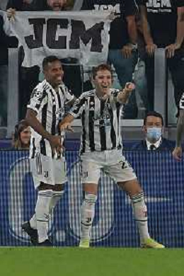 Torino 29.09.2021 Stadio Allianz Stadium ©Alessandro Falzone/Agenzia Aldo Liverani Juventus vs Chelsea Champions League 2021/2022 Nella foto : ESULTANZA GOL DI FEDERICO CHIESA CON ALEX SANDRO ©FALZONE/AGENZIA ALDO LIVERANI SAS