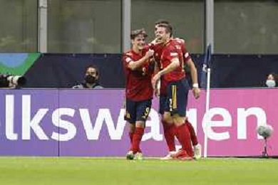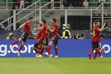 UEFA NATIONS LEAGUE 2021 gara semifinale ITALIA - SPAGNA del 06/10/2021 - nella foto: esultanza spagna dopo il gol di Ferran Torres ©Claudio Zamagni/Agenzia Aldo Liverani s.a.s. during European UEFA Nations League 2021 semifinal soccer match between Italy and Spain at san Siro Stadium in Milan on October 06 2021 photo credit by Claudio Zamagni/Aldo Liverani Photo Agency/AGENZIA ALDO LIVERANI SAS