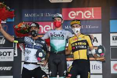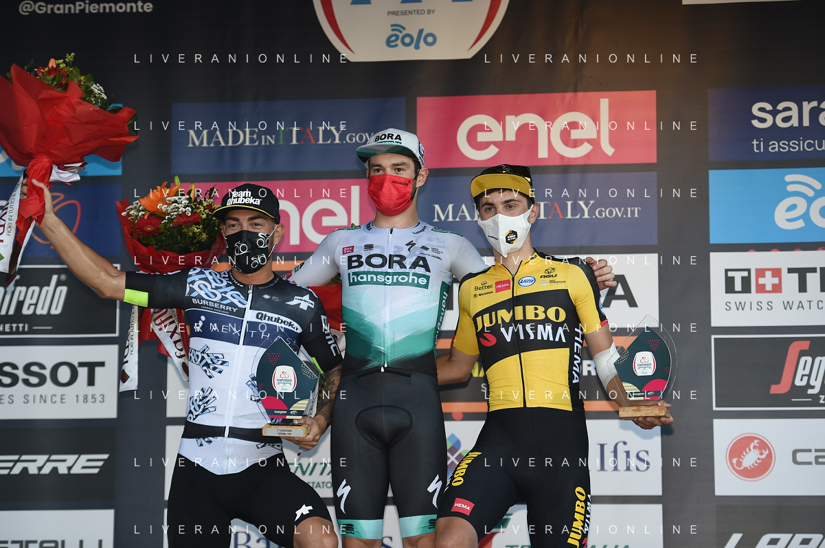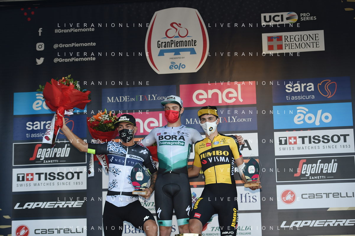 07-10-2021 Giro Del Piemonte; 2021, Bora - Hansgrohe; 2021, Qhubeka - Nexthash; 2021, Jumbo - Visma; Walls, Matthew; Nizzolo, Giacomo; Kooij, Olav; Borgosesia; ©SIROTTI/AGENZIA ALDO LIVERANI SAS