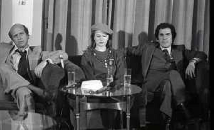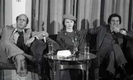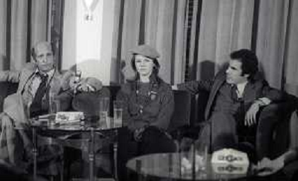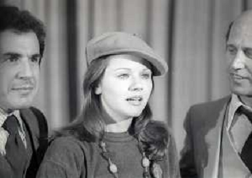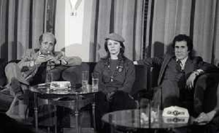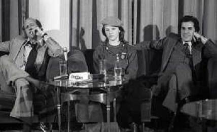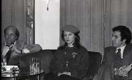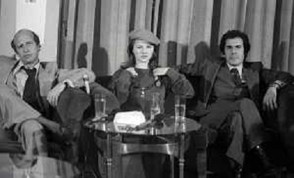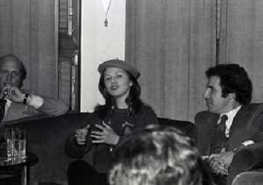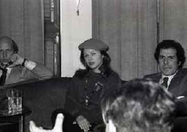 RETROSPETTIVA AGOSTINA BELLI ATTRICE NELLA FOTO AGOSTINA BELLI CON STEFANO SATTA FLORES E IL REGISTA SERGIO GOBBI ALLA PRESENTAZIONE DEL FILM “ENFANTASME“ NELL'ANNO 1978 AG ALDO LIVERANI SAS