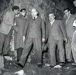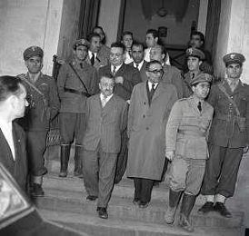 RETROSPETTIVA GIUSEPPE ROMITA POLITICO NELLA FOTO GIUSEPPE ROMITA MINISTRO DEL LAVORO NELL'ANNO 1950 VISITA LE ZONE ALLUVIONATE DELLA BASSA PADANA AG ALDO LIVERANI SAS