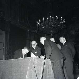 RETROSPETTIVA GIUSEPPE ROMITA POLITICO NELLA FOTO GIUSEPPE ROMITA NELL'ANNO 1955-1960 A ROMA ALLA PRESENTAZIONE DEL GOVERNO SCELBA MARIO AG ALDO LIVERANI SAS