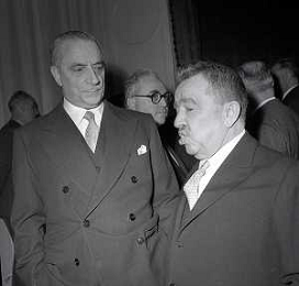 RETROSPETTIVA GIUSEPPE ROMITA POLITICO NELLA FOTO GIUSEPPE ROMITA NELL'ANNO 1955-1960 A ROMA ALLA PRESENTAZIONE DEL GOVERNO SCELBA CON CAMPILLI PIETRO AG ALDO LIVERANI SAS