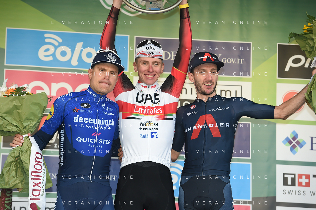 09-10-2021 Giro Di Lombardia; 2021, Uae - Emirates; 2021, Deceuninck - Quick Step; 2021, Ineos Grenadiers; Pogacar, Tadej; Masnada, Fausto; Yates, Adam; Bergamo; ©SIROTTI/AG. ALDO LIVERANI SAS