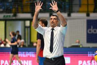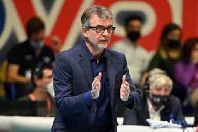 © TVRG Massimo Eccheli allenatore Monza Vero Volley Monza vs Leo Shoes PerkinElmer Modena Campionato SuperLega Credem Banca - 1a giornata Monza 10-10-2021 Arena di Monza foto Roberto Garavaglia/ag. Aldo Liverani sas/AGENZIA ALDO LIVERANI SAS