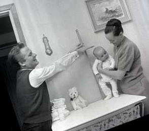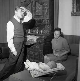 RETROSPETTIVA ALIGHIERO NOSCHESE ATTORE -IMITATORE-SHOWMAN E COMICO NELLA FOTO ALIGHIERO NOSCHESE IN FAMIGLIA CON LA MOGLIE EDDA DE BELLIS E IL FIGLIO ANTONELLO NOSCHESE NELL'ANNO 1965 AG ALDO LIVERANI SAS