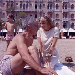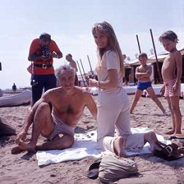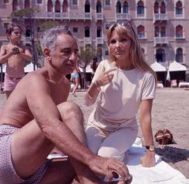 RETROSPETTIVA ELIA KAZAN REGISTA-SCENEGGIATORE-ATTORE-PRODUTTORE CINEMATOGRAFICO NELLA FOTO ELIA KAZAN CON LA MOGLIE BARBARA LODEN SULLA SPIAGGIA DEL LIDO DI VENEZIA AG ALDO LIVERANI SAS