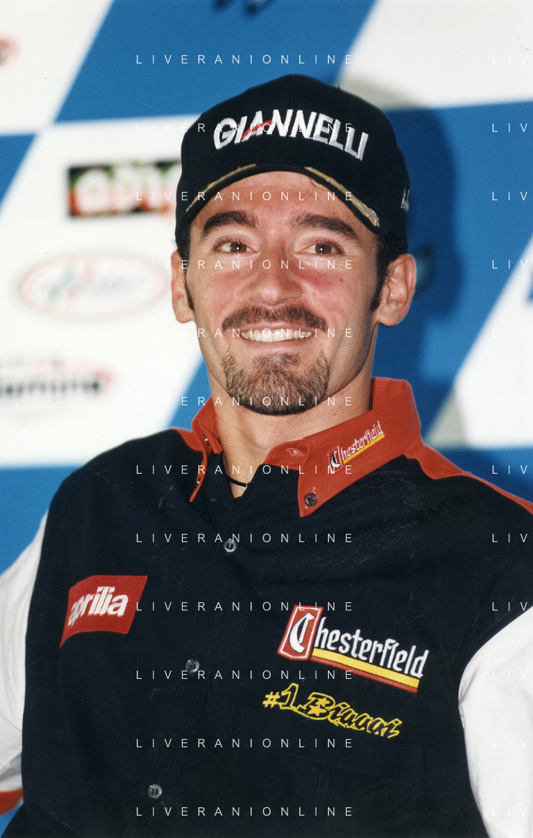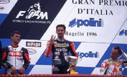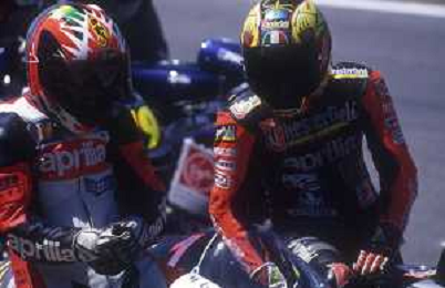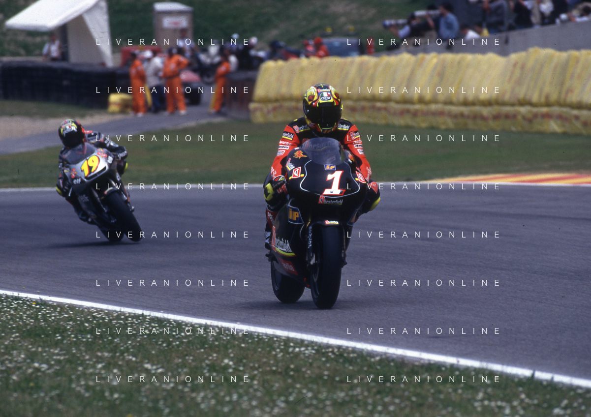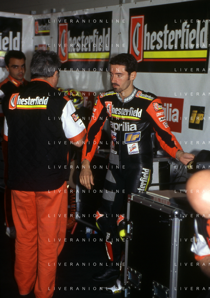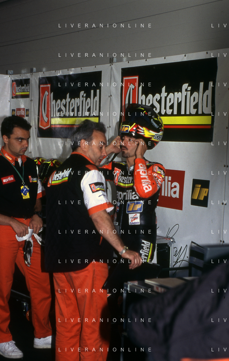 RETROSPETTIVA MAX BIAGGI MOTOCICLISMO NELLA FOTO MAX BIAGGI APRILIA C.C 250 NELL'ANNO 1996 CON CESARE FIORIO ARCHIVIO DANILO RECALCATI-AG ALDO LIVERANI SAS