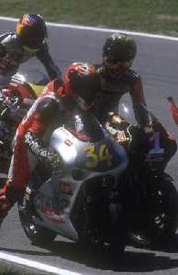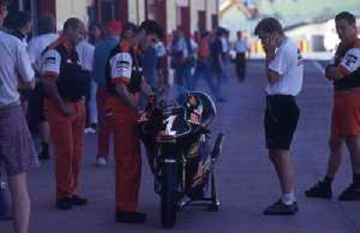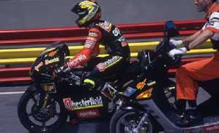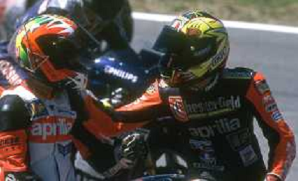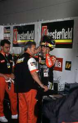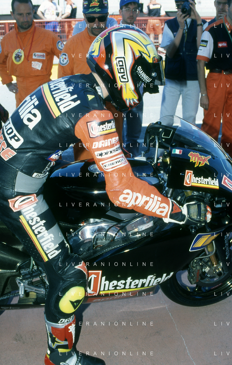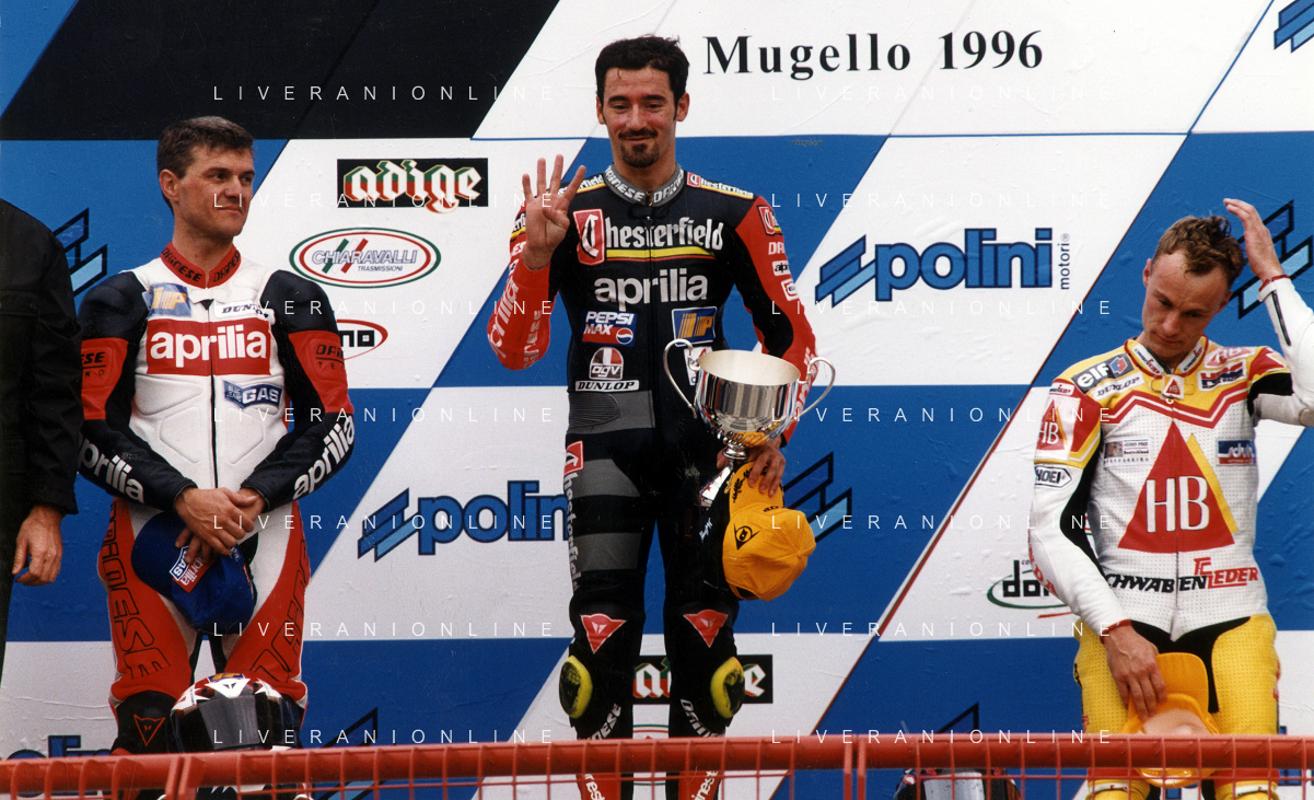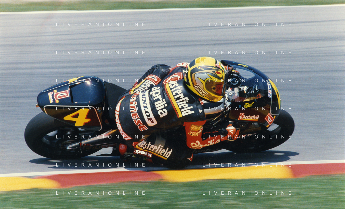 RETROSPETTIVA MAX BIAGGI MOTOCICLISMO NELLA FOTO MAX BIAGGI APRILIA C.C 250 NELL'ANNO 1996 CON CESARE FIORIO ARCHIVIO DANILO RECALCATI-AG ALDO LIVERANI SAS