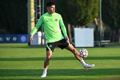 © TVRG Allenamento Inter nella foto Lautaro Martinez Appiano Gentile (CO) 18-10-2021 Centro sportivo Suning in memoria di Angelo Moratti Allenamento dell'Inter in preparazione della gara contro lo Sheriff Tiraspol valevole per la 3a giornata del gruppo D della fase a gironi della UEFA Champions League foto Roberto Garavaglia/ag. Aldo Liverani sas/AGENZIA ALDO LIVERANI SAS