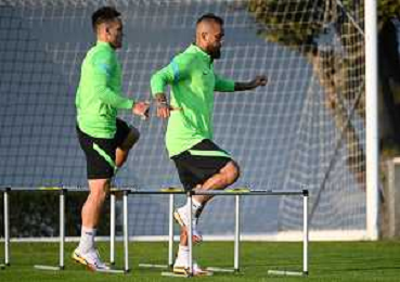 © TVRG Allenamento Inter nella foto Hakan Calhanoglu e Arturo Vidal Appiano Gentile (CO) 18-10-2021 Centro sportivo Suning in memoria di Angelo Moratti Allenamento dell'Inter in preparazione della gara contro lo Sheriff Tiraspol valevole per la 3a giornata del gruppo D della fase a gironi della UEFA Champions League foto Roberto Garavaglia/ag. Aldo Liverani sas/AGENZIA ALDO LIVERANI SAS