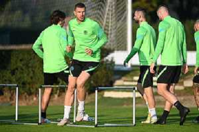© TVRG Allenamento Inter nella foto Edin Dzeko Appiano Gentile (CO) 18-10-2021 Centro sportivo Suning in memoria di Angelo Moratti Allenamento dell'Inter in preparazione della gara contro lo Sheriff Tiraspol valevole per la 3a giornata del gruppo D della fase a gironi della UEFA Champions League foto Roberto Garavaglia/ag. Aldo Liverani sas/AGENZIA ALDO LIVERANI SAS