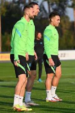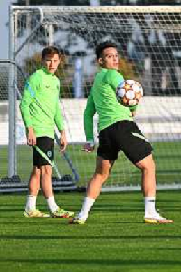 © TVRG Allenamento Inter nella foto Nicolo' Barella e Lautaro Martinez Appiano Gentile (CO) 18-10-2021 Centro sportivo Suning in memoria di Angelo Moratti Allenamento dell'Inter in preparazione della gara contro lo Sheriff Tiraspol valevole per la 3a giornata del gruppo D della fase a gironi della UEFA Champions League foto Roberto Garavaglia/ag. Aldo Liverani sas/AGENZIA ALDO LIVERANI SAS