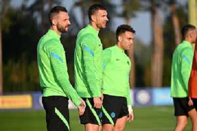 © TVRG Allenamento Inter nella foto da SX Marcelo Brozovic, Edin Dzeko e Lautaro Martinez Appiano Gentile (CO) 18-10-2021 Centro sportivo Suning in memoria di Angelo Moratti Allenamento dell'Inter in preparazione della gara contro lo Sheriff Tiraspol valevole per la 3a giornata del gruppo D della fase a gironi della UEFA Champions League foto Roberto Garavaglia/ag. Aldo Liverani sas/AGENZIA ALDO LIVERANI SAS