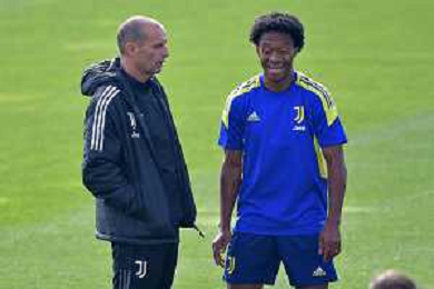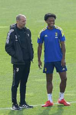 Torino 19.10.2021 Juventus Centre Continassa Allenamento rifinitura Champions League 2021/2022 ©Manuela Viganti/Ag. Aldo Liverani sas Nella foto: massimiliano allegri e juan cuadrado ©VIGANTI/AGENZIA ALDO LIVERANI SAS