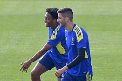 Torino 19.10.2021 Juventus Centre Continassa Allenamento rifinitura Champions League 2021/2022 ©Manuela Viganti/Ag. Aldo Liverani sas Nella foto: juan cuadrado e rodrigo bentancur ©VIGANTI/AGENZIA ALDO LIVERANI SAS