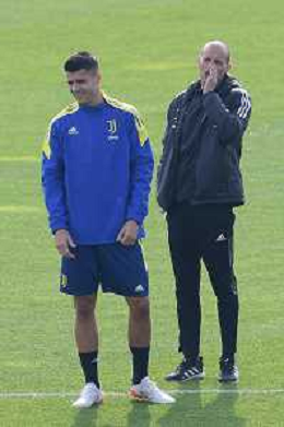 Torino 19.10.2021 Juventus Centre Continassa Allenamento rifinitura Champions League 2021/2022 ©Manuela Viganti/Ag. Aldo Liverani sas Nella foto: alvaro morata e massimiliano allegri ©VIGANTI/AGENZIA ALDO LIVERANI SAS