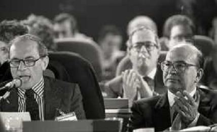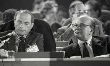 RETROSPETTIVA BETTINO CRAXI POLITICO NELLA FOTO BETTINO CRAXI CON ENRICO MANCA A RIMINI NELL'ANNO 1987 AL CONGRESSO DEL PSI AG ALDO LIVERANI SAS