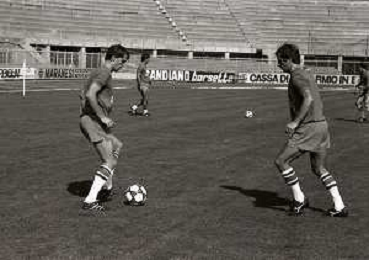 1981 ALLENAMENTO NAZIONALE ITALIANA DI CALCIO NELLA FOTO FRANCO SELVAGGI E ROBERTO PRUZZO AG ALDO LIVERANI SAS