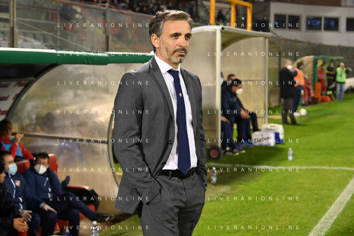 al centro Luca D'Angelo allenatore Pisa Cremonese vs Pisa Campionato Serie BKT - 10a giornata Cremona 28-10-2021 Stadio Giovanni Zini foto Roberto Garavaglia/ag. Aldo Liverani sas/AGENZIA ALDO LIVERANI SAS