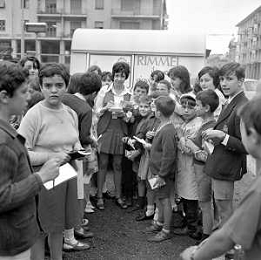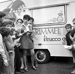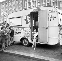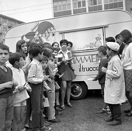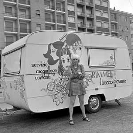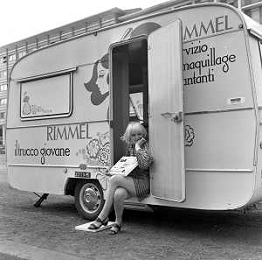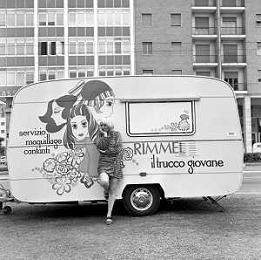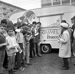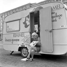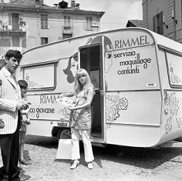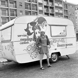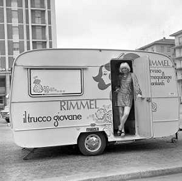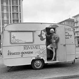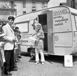 1969 OTTAVA EDIZIONE DEL CANTAGIRO MANIFESTAZIONE CANORA ITINERANTE - RETROSPETTIVA NELLA FOTO IL CARAVAN DELLA RIMMEL MAQUILLAGE SPONSOR DELLA MANIFESTAZIONE ©Archivio Giovanni Liverani /AGENZIA ALDO LIVERANI SAS