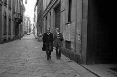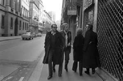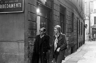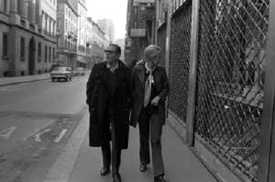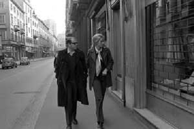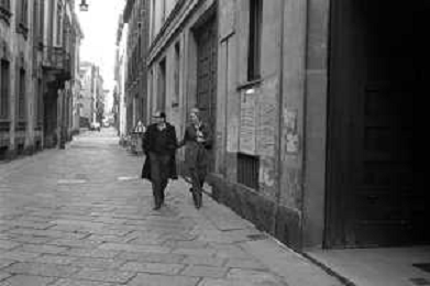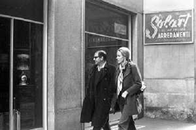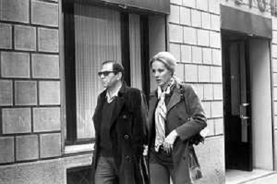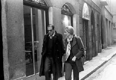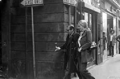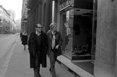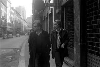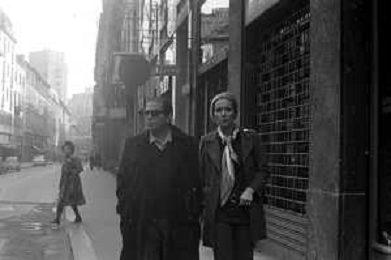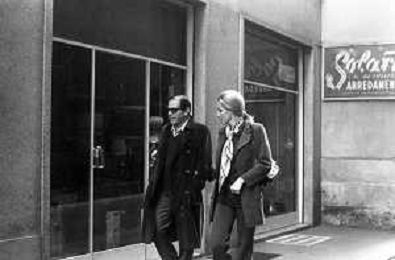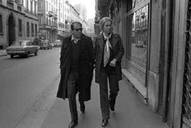ENRICO MARIA SALERNO CON LA COMPAGNA ALICE KESSLER PER LE VIE DELLA CITTA' DI MILANO NEL MARZO 1971 - RETROSPETTIVA