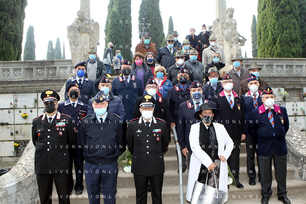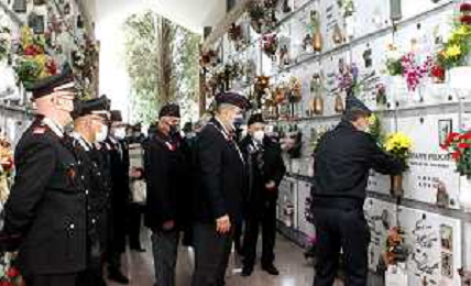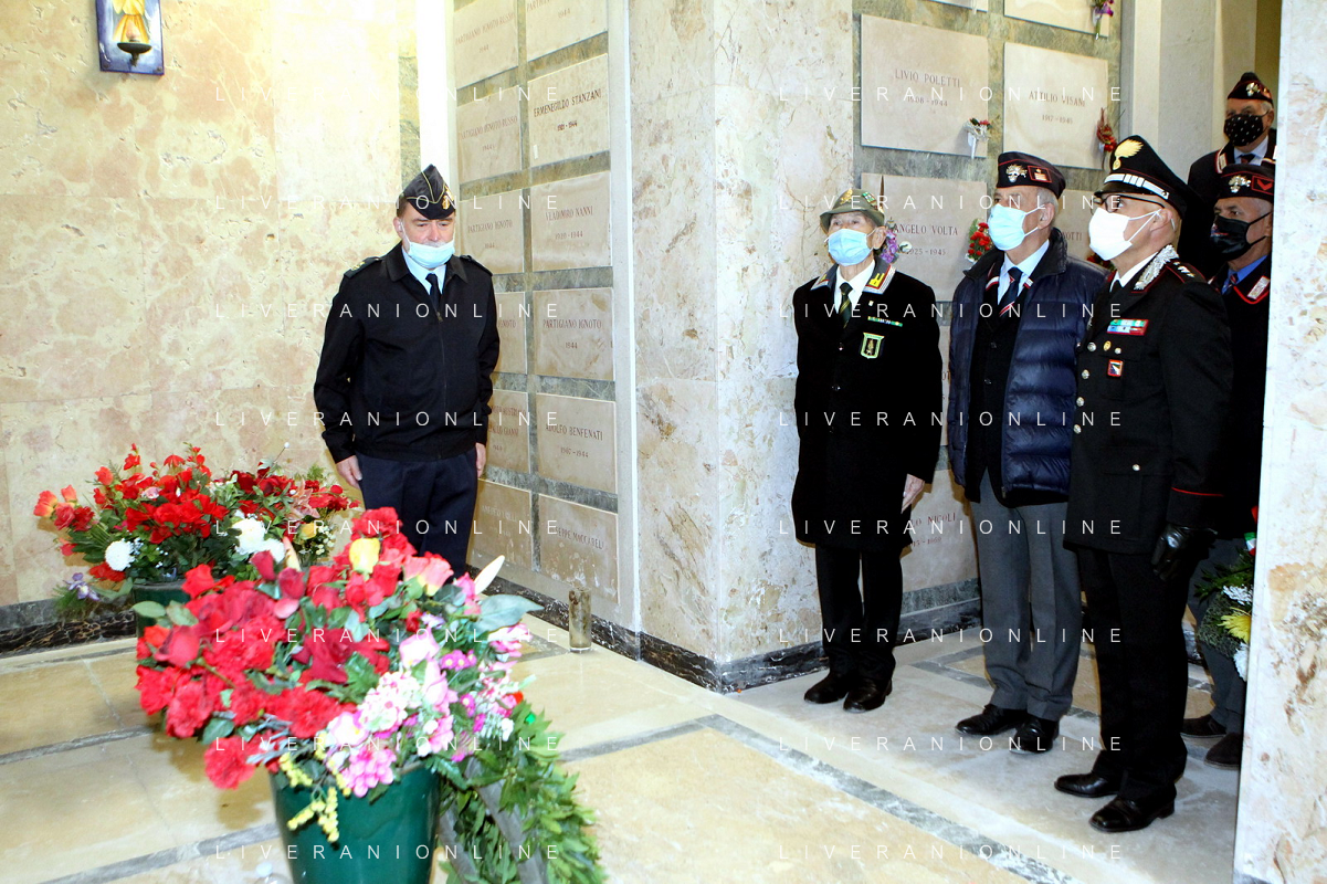IMOLA 30 10 2021 CIMITERO DEL PIRATELLO ASSOCIAZIONE D'ARMA DEPONE LE CORONE A RICORDO DEI PARTIGIANI AI CADUTI DELLA GRANDE GUERRA E FIORI PER RICORDARE I CARABINIERI CAP.GIUSEPPE PULICARI E BRIG ANDREA.LOMBARDINI - 4 file