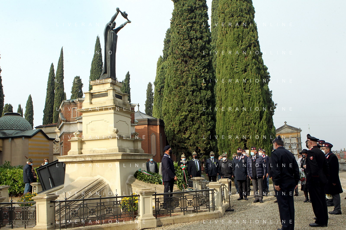 IMOLA 30 10 2021 CIMITERO DEL PIRATELLO ASSOCIAZIONE D'ARMA DEPONE LE CORONE A RICORDO DEI PARTIGIANI AI CADUTI DELLA GRANDE GUERRA E FIORI PER RICORDARE I CARABINIERI CAP.GIUSEPPE PULICARI E BRIG ANDREA.LOMBARDINI FOTO GIANNI SANNA-AG ALDO LIVERANI SAS