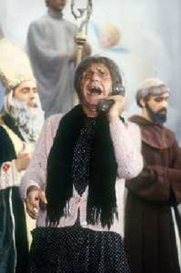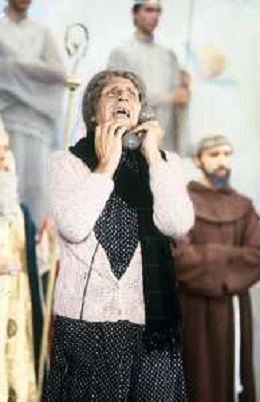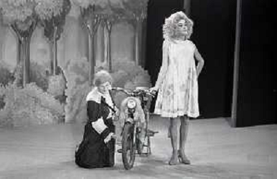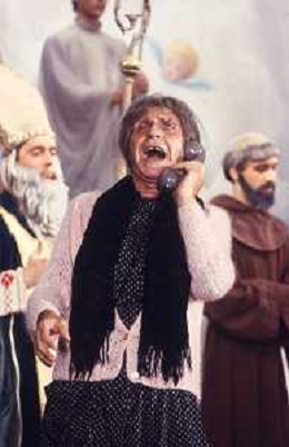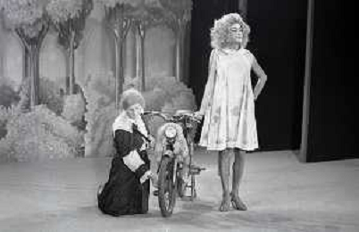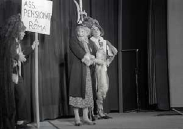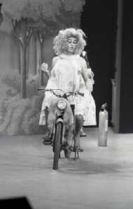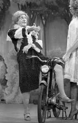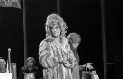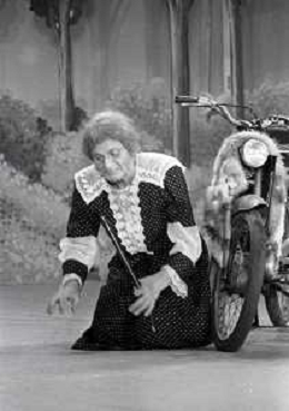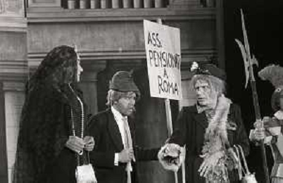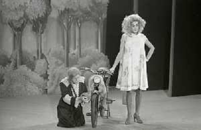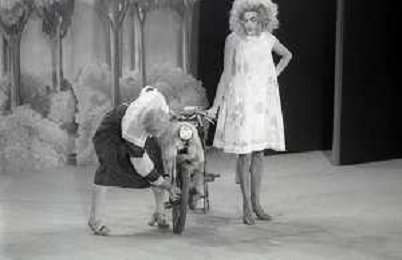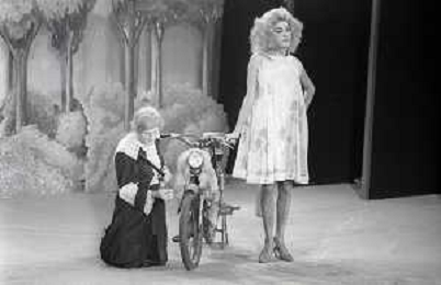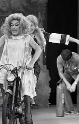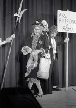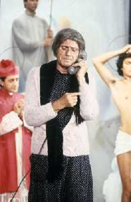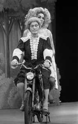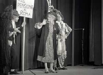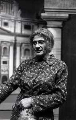 RETROSPETTIVA FELICE MUSAZZI ATTORE TEATRALE NELLA FOTO FELICE MUSAZZI CON LA COMPAGNIA TEATRALE I LEGNANESI NEL RUOLO DI TERESA NELL'ANNO 1981 A MILANO AG ALDO LIVERANI SAS
