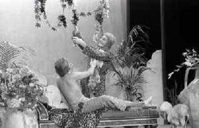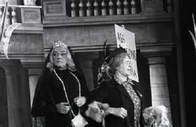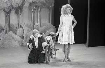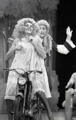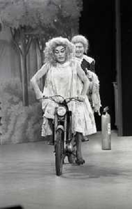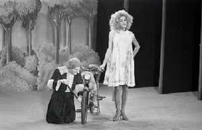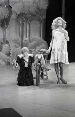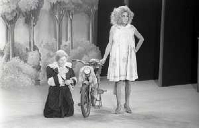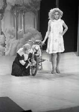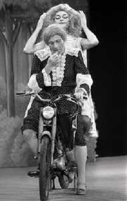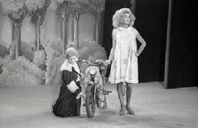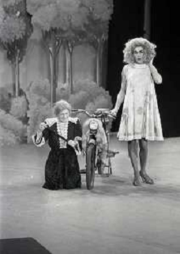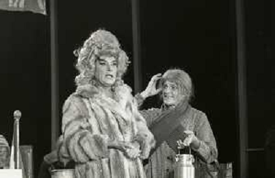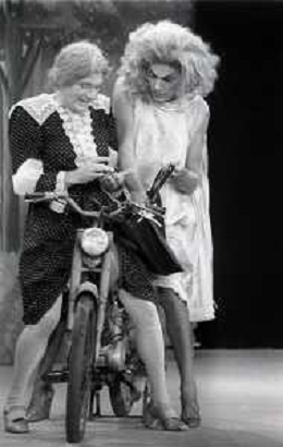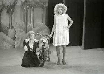 RETROSPETTIVA FELICE MUSAZZI ATTORE TEATRALE NELLA FOTO FELICE MUSAZZI E TONY BARLOCCO CON LA COMPAGNIA TEATRALE I LEGNANESI NEL RUOLO DI TERESA NELL'ANNO 1980 A MILANO AG ALDO LIVERANI SAS