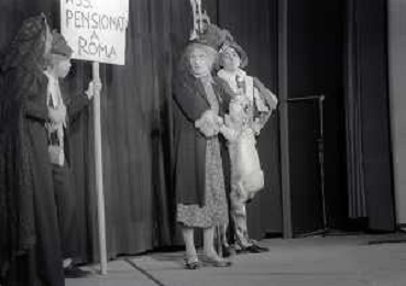RETROSPETTIVA FELICE MUSAZZI ATTORE TEATRALE NELLA FOTO FELICE MUSAZZI CON LA COMPAGNIA TEATRALE I LEGNANESI NEL RUOLO DI TERESA NELL'ANNO 1980 A MILANO AG ALDO LIVERANI SAS