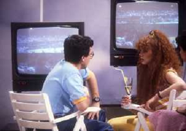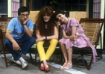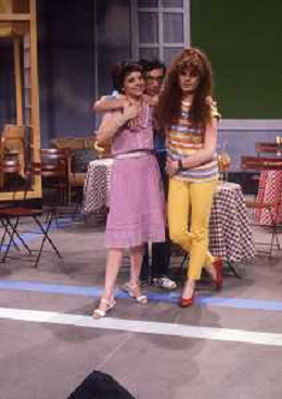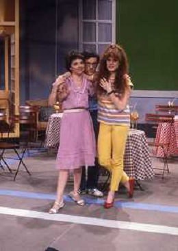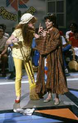 RETROSPETTIVA EDY ANGELILLO ATTRICE NELLA FOTO EDY ANGELILLO NELLA TRASMISSIONE TELEVISIVA “FRECO FRESCO“ RAI NELL'ANNO 1981CON MAURIZIO ESPOSITO E DANIA CERICOLA AG ALDO LIVERANI SAS