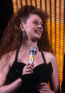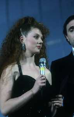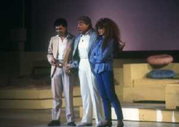 RETROSPETTIVA EDY ANGELLILLO ATTRICE NELLA FOTO EDY ANGELILLO A SANREMO NELL'ANNO 1984 CON TIZIANA PINI E PIPPO BAUDO AG ALDO LIVERANI SAS