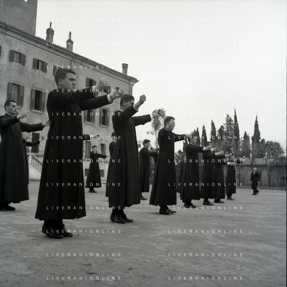 1950 ROMA PRETI CHE FANNO ATTIVITA' FISICA E GINNASTICA FOTO SANDRO VESPASIANI-AG ALDO LIVERANI SAS