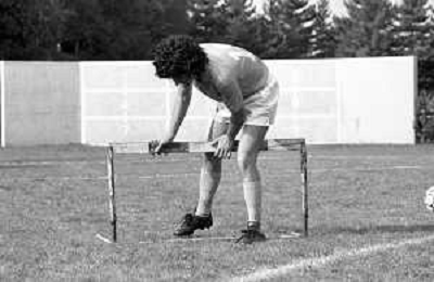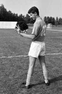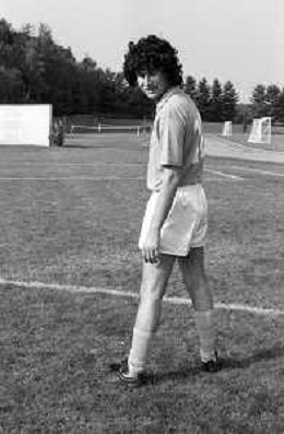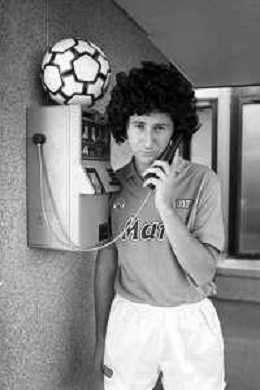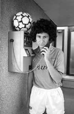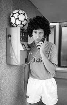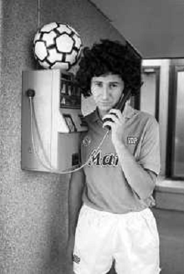 FABIO FAZIO CONDUTTORE TELEVISIVO CON LA DIVISA DEL NAPOLI CALCIO IMITA MARADONA NEL 1989 - RETROSPETTIVA ©ARCHIVIO DFP/AGENZIA ALDO LIVERANI SAS