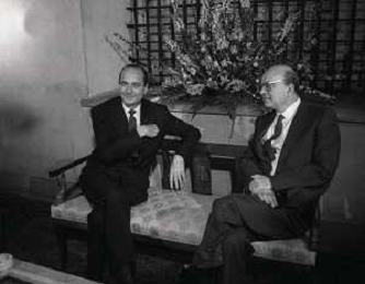 RETROSPETTIVA BETTINO CRAXI POLITICO NELLA FOTO BETTINO CRAXI CON FRANCOIS MITTERAND NELL'ANNO 1986 AG ALDO LIVERANI SAS
