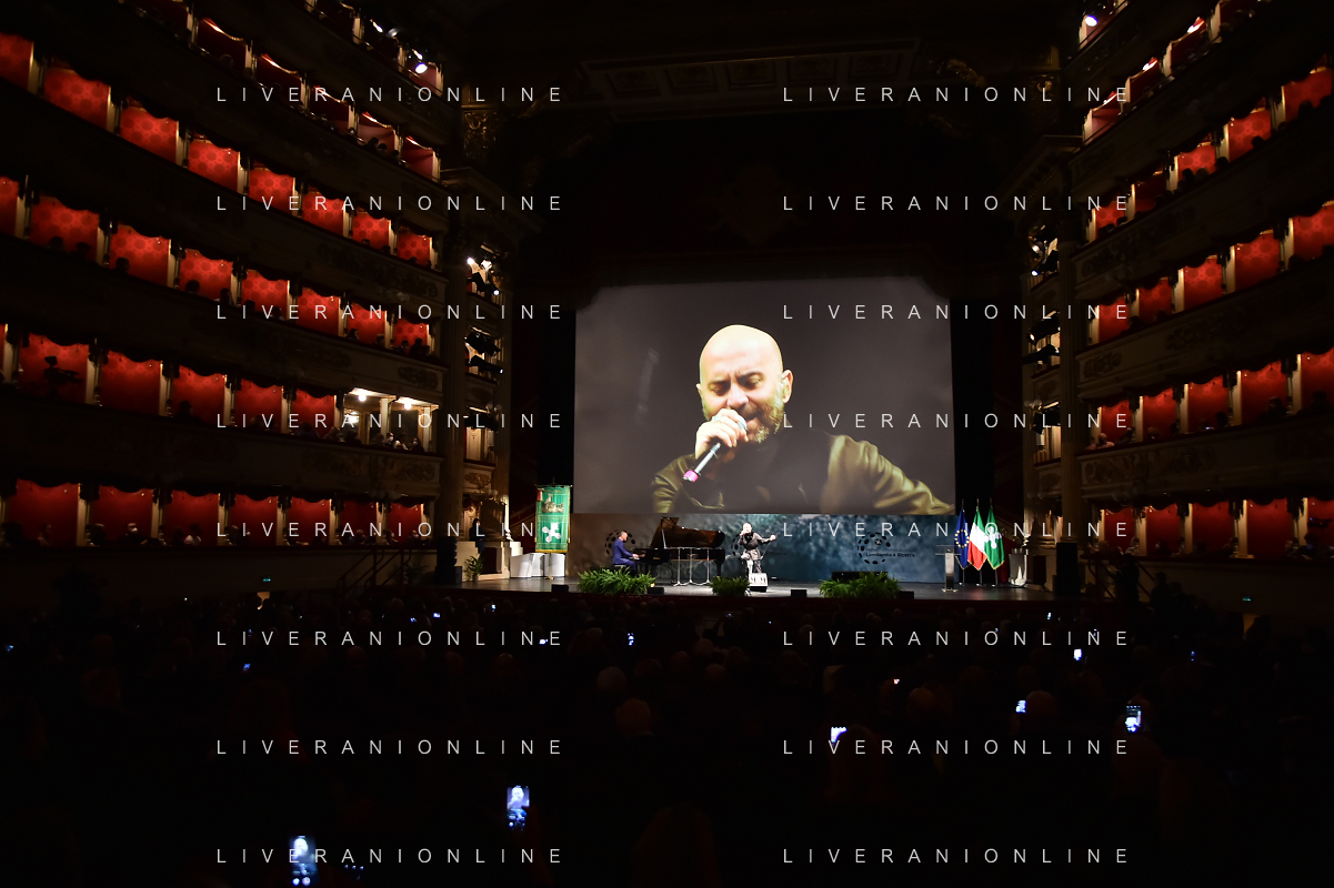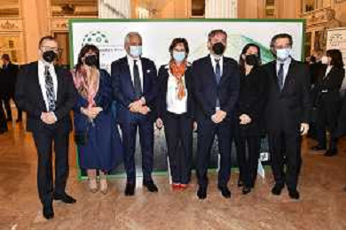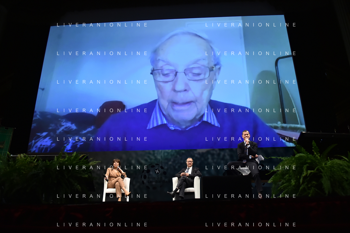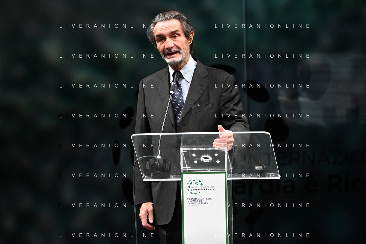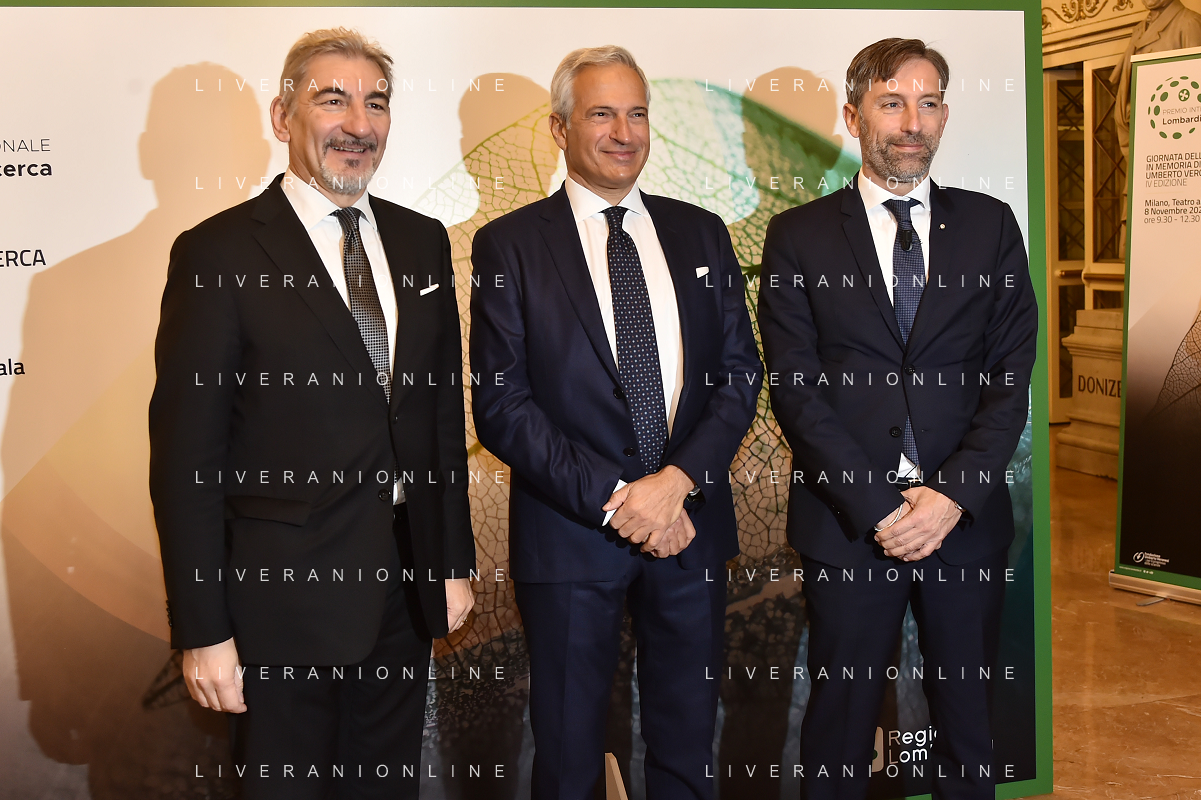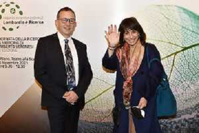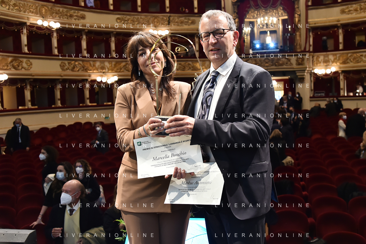 © TVRG Giornata della Ricerca nella foto da SX i premiati Markus Antonietti, Marcella Bonchio con Paolo Veronesi presidente di Fondazione Veronesi, il ministro Maria Cristina Messa, Fabrizio Sala assessore regionale, Licia Ronzulli e Attilio Fontana presidente di Regione Lombardia Milano 08-11-2021 Consegna del premio Lombardia e' Ricerca nel corso dell'evento Giornata della Ricerca organizzato da Regione Lombardia al Teatro alla Scala di Milano foto Roberto Garavaglia/ag. Aldo Liverani sas/ AG ALDO LIVERANI SAS